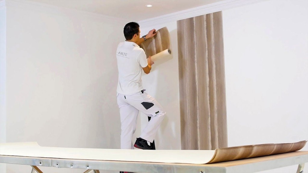 Langkah berikutnya yaitu menempelkan wallpaper pada dinding. Lakukan secara hati-hati untuk setiap lembar wallpaper. Ikutilah garis yang sudah Anda buat sebagai acuan agar wallpaper terpasang dengan rapi serta simetris.