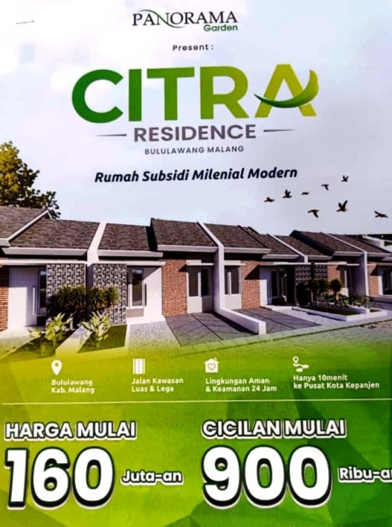 Citra Residence ini merupakan perumahan subsidi yang berlokasi di daerah Sukonolo Bululawang. Hanya 10 menit ke pusat kota Kepanjen.