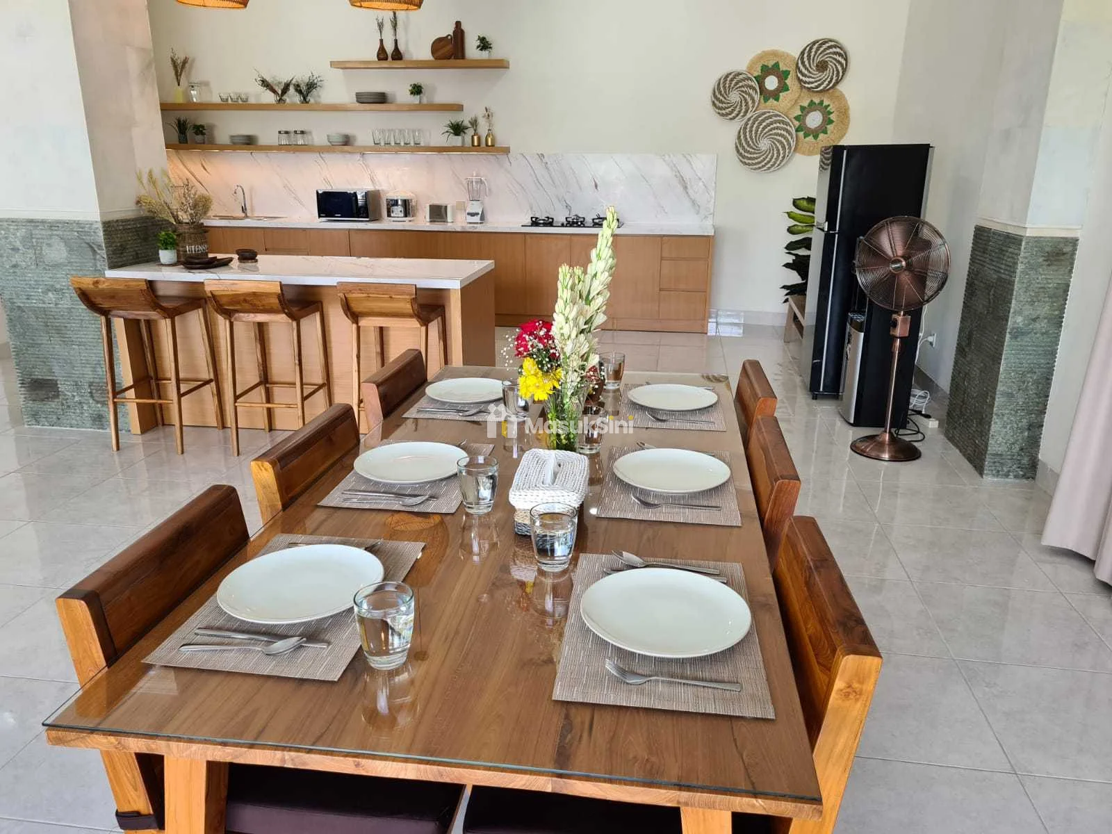 dapur lengkap dengan peralatan masak dan peralatanmakan
