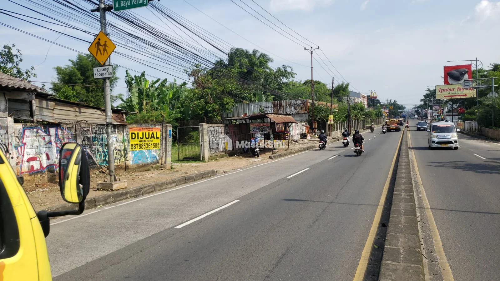 -Lokasi Tanah Strategis, berada di pinggir jalan raya dengan arus lalu lintas ramai. Dan berada di sederetan MC Donald dan diseberang Restoran Lembur Kuring.