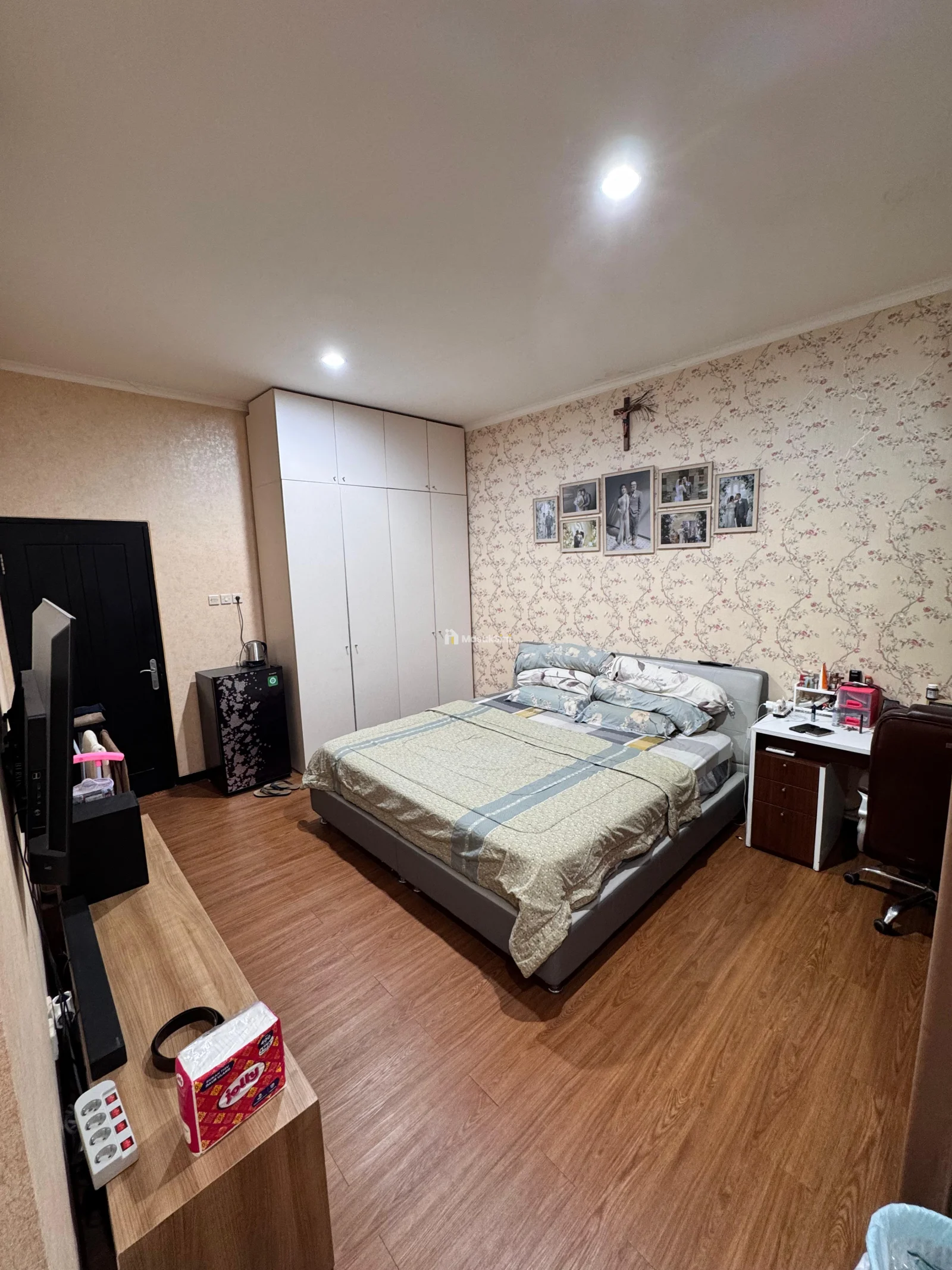- Lantai kamar full wallpaper & Full parkid kayu