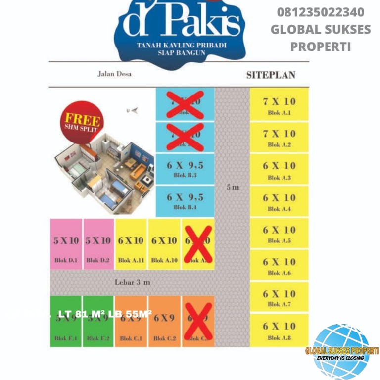 Blok C : 6 × 9 : Rp 85 juta