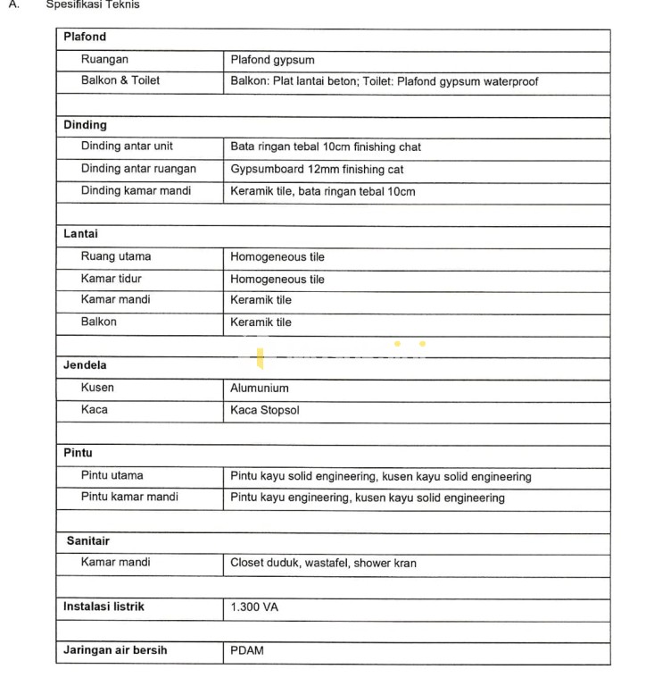 Spesifikasi Properti